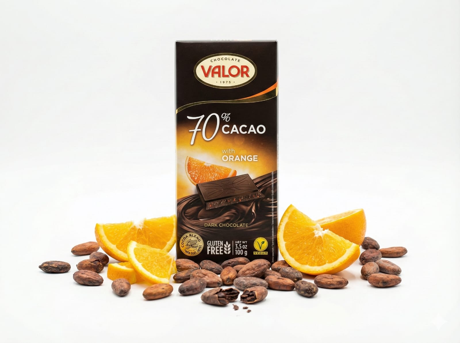 Sastojci: kakaova masa, šećer, kakao u prahu sa smanjenom masti, kakaov maslac, dehidrirani komadići naranče (1,5%), emulgator: lecitin (soja), arome. Može sadržavati mlijeko, bademe, lješnjake i makadamije orahe u tragovima.